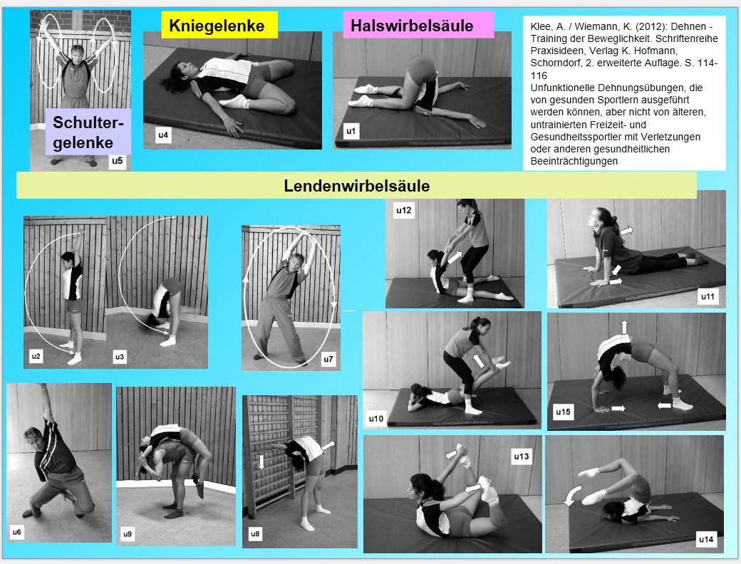 Klee, A. / Wiemann, K. (2012): Dehnen - Training der Beweglichkeit. Schriftenreihe Praxisideen, Verlag K. Hofmann, Schorndorf, 2. erweiterte Auflage. S. 109-116