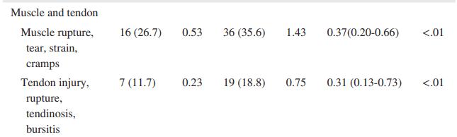 Die Autoren stellen eine Verminderung von über 50% bei den Muskelverletzungen und bei den Sehnenverletzungen fest.